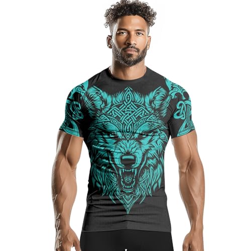 trending ! Men’s MMA Rash Guard – Short Sleeve Viking Design Compression Shirt for Combat Sports and No-Gi Training