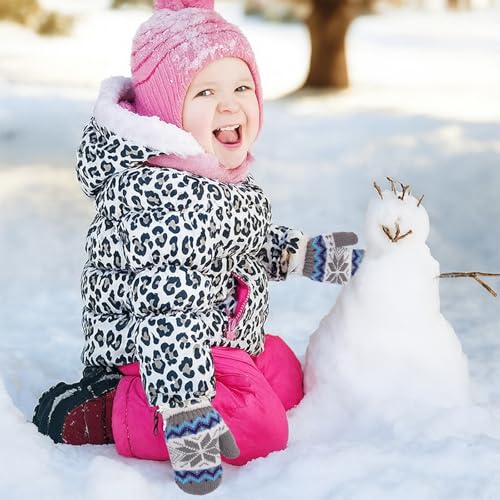 Kids Winter Gloves Boys Girls Knit Fleece Lined toasty Mittens Cute Outdoor Snow Gloves (for 3-7 Years)