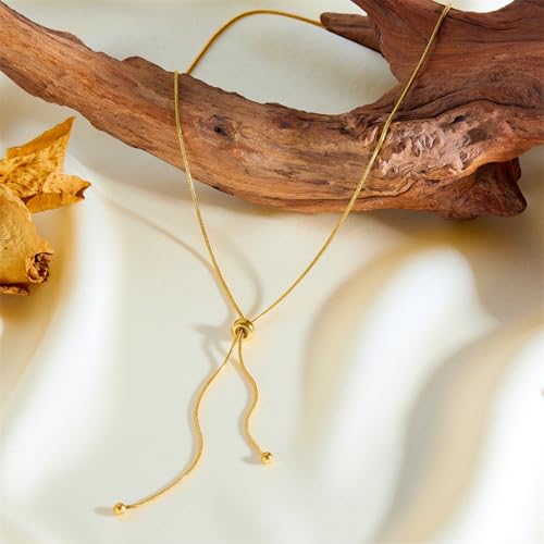 More information about 18K Gold Plated Bead Choker Necklace for Women,316L Titanium Steel Adjustable Y Necklace Trendy Jewelry Gifts for Women.