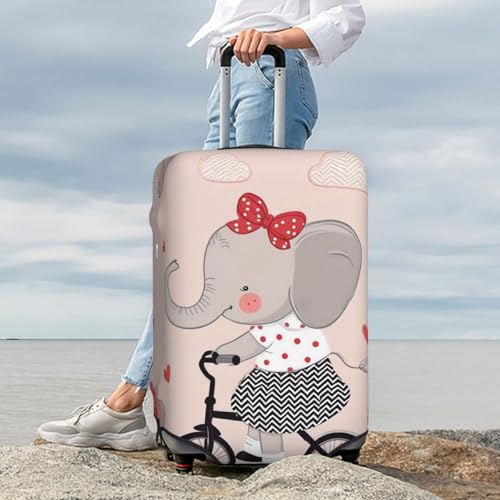 Cute Elephant Bike Ride Luggage Cover Elastic Washable Protector Anti-Scratch Travel Suitcase Covers With Concealed Zipper For 18-32 Inch Luggage Large 7