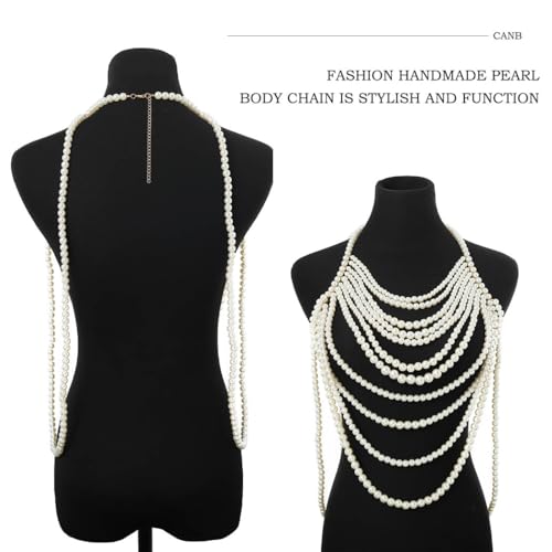 HOT ! CanB Pearl Body Chain Shoulder Necklace Pearl Top Bikini Sexy Bra ChainPearls Shoulder Chains Bra Chain Jewelry for Women Rave Nightclub Party Body Accessories (B)