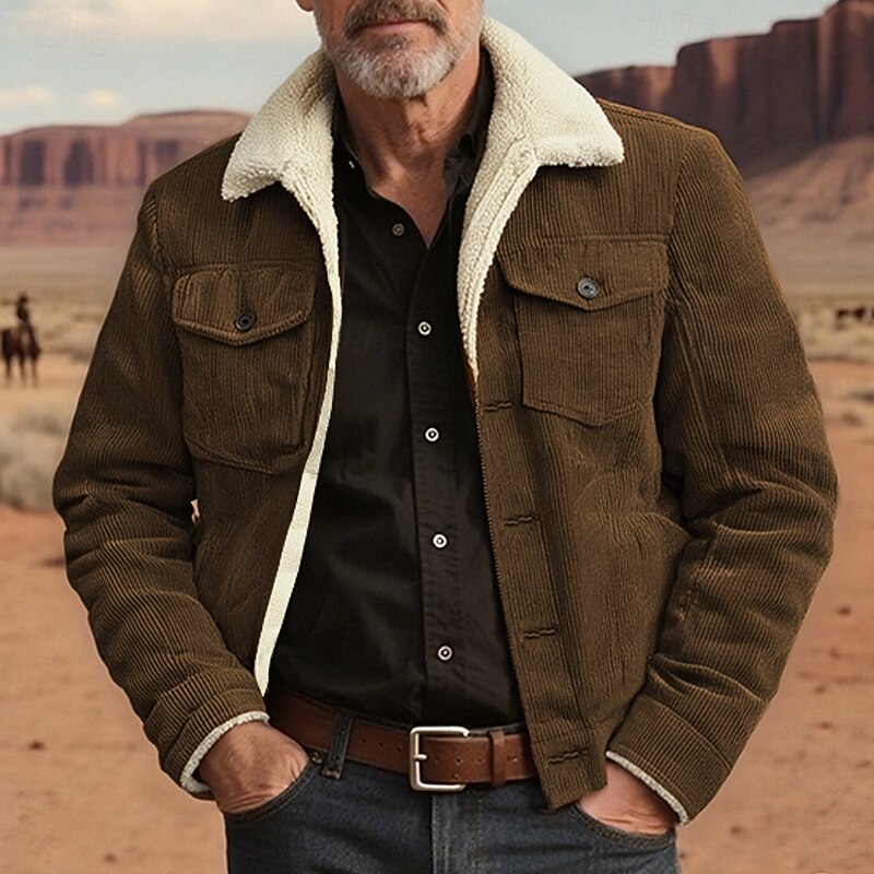Men's Winter Jacket Corduroy Jacket Fleece Jacket Cargo Jacket Vacation Daily Thermal Warm Pocket Fleece Winter Plain Fashion Streetwear Lapel Regular Black Brown Coffee Jacket 1