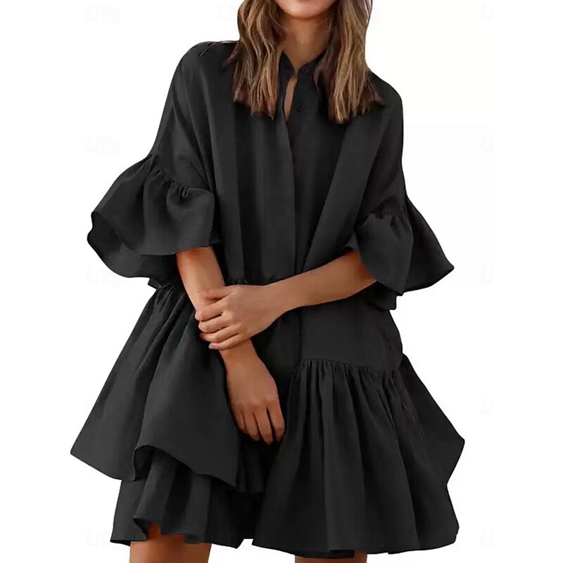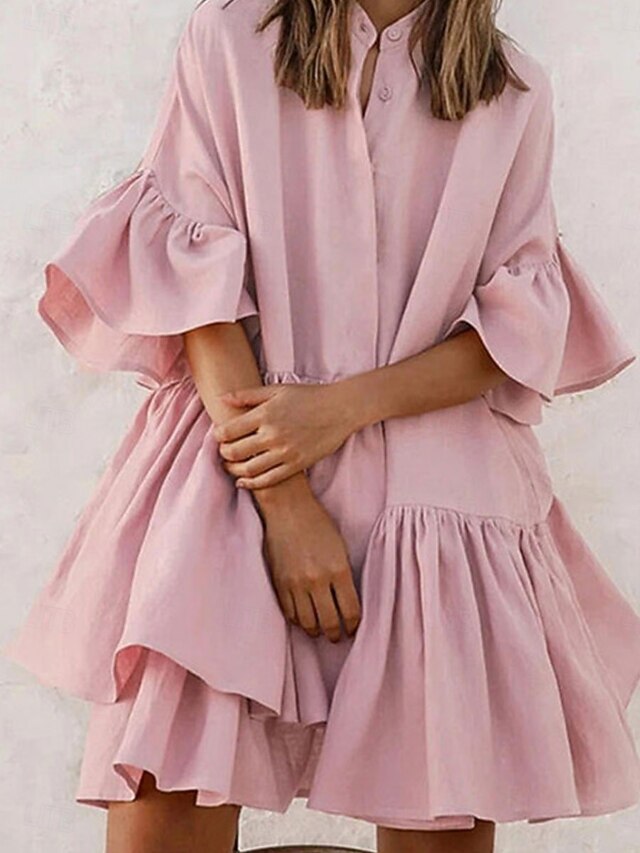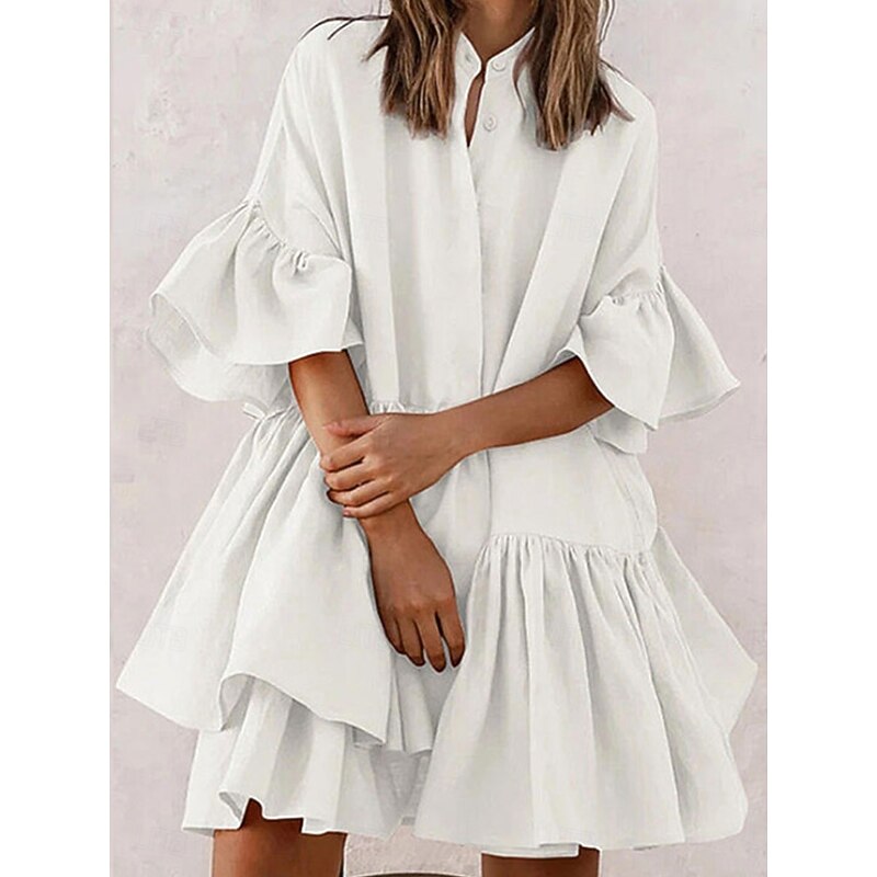 More information about Women's Mini Dress Casual Dress Chiffon Dress Elegant Cute Stylish Flared Sleeve Vacation Daily Loose Fit Plain Short Sleeve Stand Collar Black White Pink Summer Spring