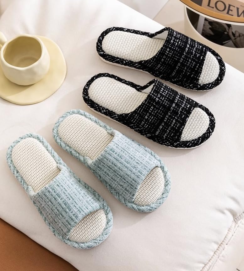 HOT ! Womens Slippers, Linen Flax House Slippers for Women Men Unisex, Cute Soft Open Toe Summer Bedroom Slides House Shoes Indoor Outdoor Shower Drys fast