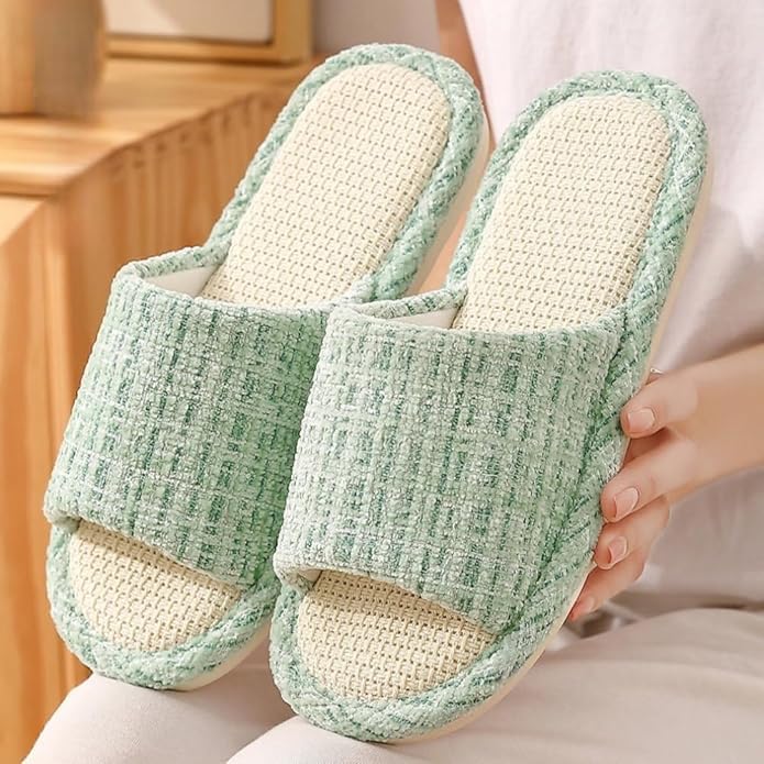 • Premium Quality & Durable Design: These slippers are crafted from a high-quality blend of cotton and linen materials, ensuring they are both durable and long-lasting. The fine, detailed weaving adds to their overall durability, making them a reliable choice for everyday wear.