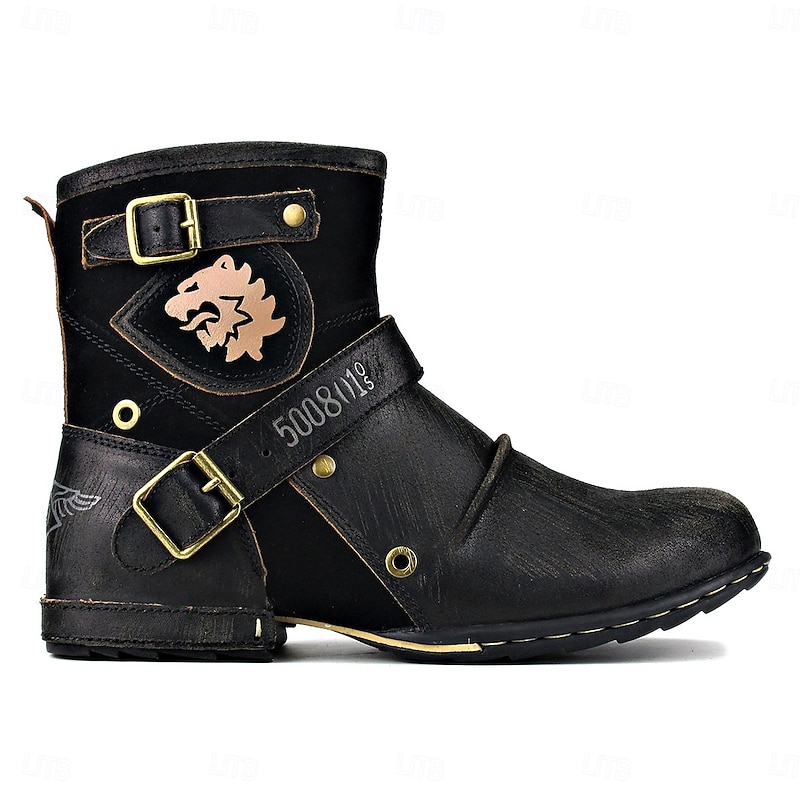 More information about Men's Brown Genuine Leather Ankle Motorcycle Boots with Buckle Straps and Retro Design, Durable Biker Boots for Riding, Outdoor Adventures and Casual Wear