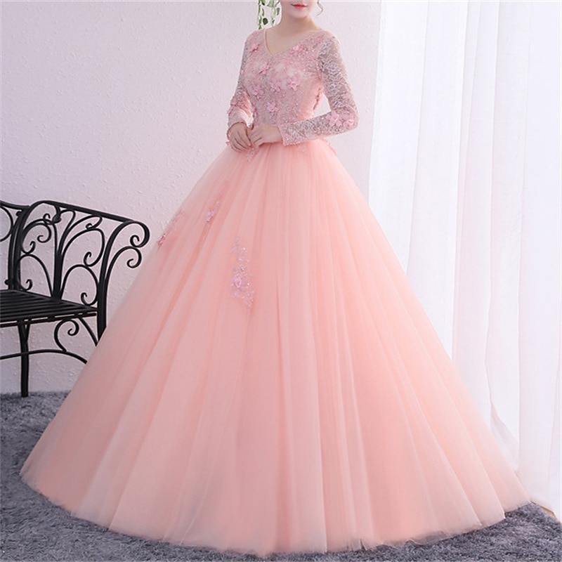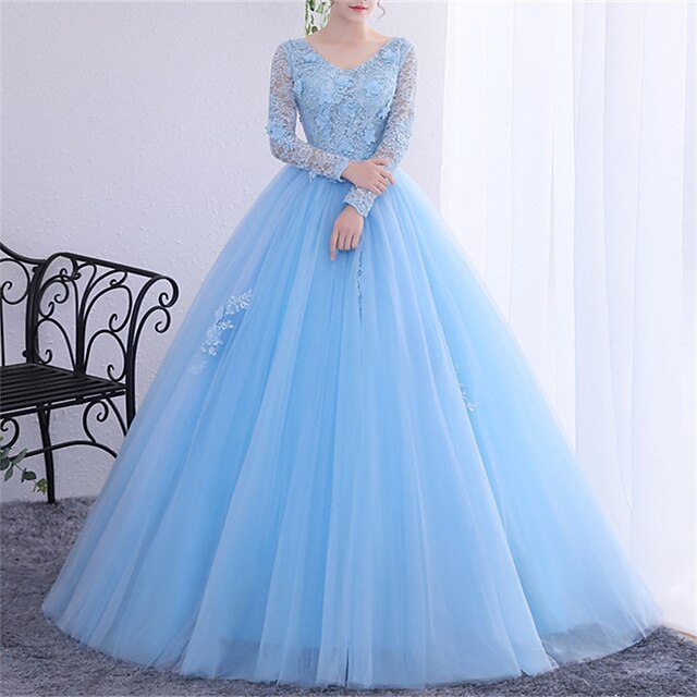 HOT ! Ball Gown Quinceanera Dresses Princess Dress Performance Quinceanera Floor Length Long Sleeve V Neck with Crystals Appliques dress to impress