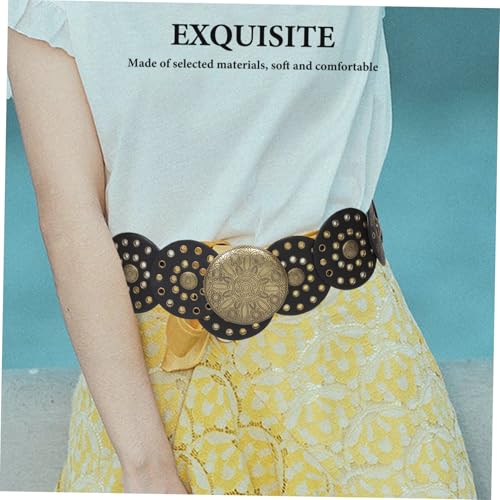 NOLITOY Vintage Western Wide Disc Belt for Women Retro Style Leather Waist Belt with Eye Catching Disc Details Fashionable Accessory for Country Outfits and Casual Wear 2
