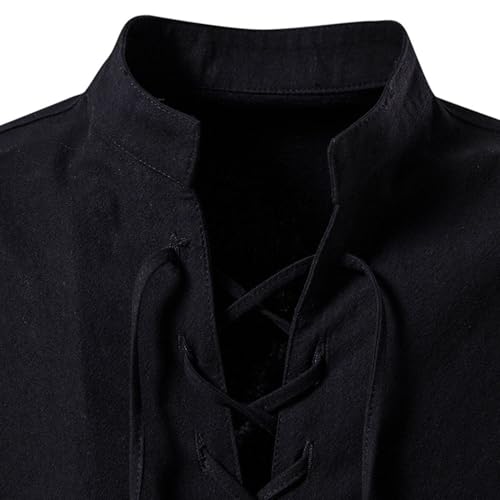 Men's Linen Cotton Shirt Soft Long Sleeve Lace Up Top Vintage Mock Neck Casual Fall Fashion Spring Henley Shirt 7