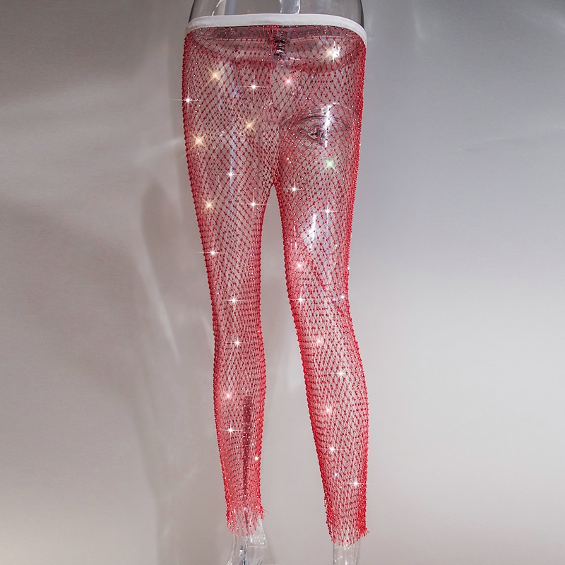 HOT ! Metallic Sparkle Sexy Pants Sheer Mesh Rhinestone Cover Up Disco Fancy Dress Women's Carnival Party Club Pride Parade Adults' Pants