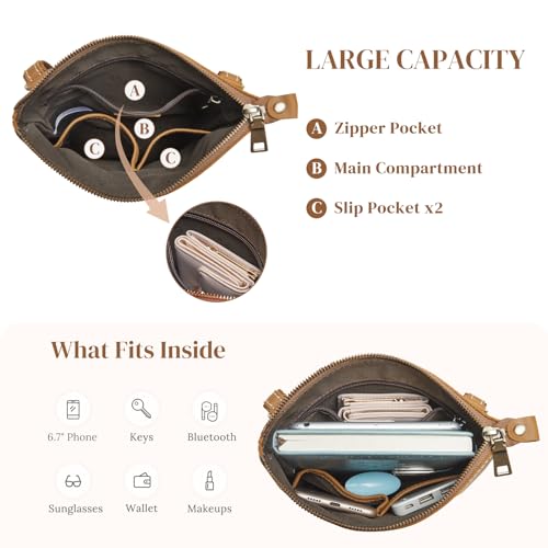 Fabric type: Top Grain Crazy Horse LeatherOrigin: ImportedMaterial: Our leather purses are crafted from Top Grain Crazy Horse Leather, accentuated with brass-tone hardware and polyester lining, ensuring enhanced durability and adding a vintage vibe to itSmall Leather Crossbody Bag: Dimension(L*W*H): 7.3” x 2.0” x 7.9”; Net weight: 0.7 LB, compact and easy to carryStructure: 1 main compartment(fits up to 7.9” tablet), 1 zipper pocket(fits up to 6.7” phone) and 2 slip pockets, simplifying the arrangement of your itemsFeature Detail: Equipped with a fixed yet adjustable long shoulder strap, this leather bag easily transitions from a crossbody bag to a shoulder bag, offering versatility and convenienceSatisfaction Service: S-ZONE makes a great effort to ensure the EVERY DETAIL of this purse, aiming to provide a long-term useful bag for customers superb for everyday use. superior materials and excellent craftsmanship ensure long-lasting durability.