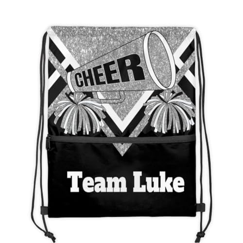 trending ! Drawstring Backpack with Name, Cheerleading Competition Drawstring Gym Bags Drawstring Beach Bag for Dance Gym Sports Travel, Silver Glittering Black Cheer Team