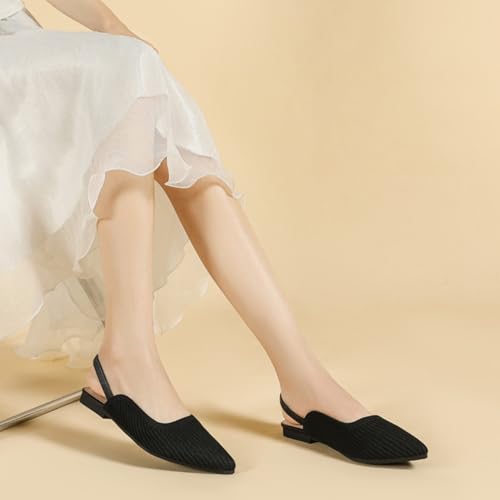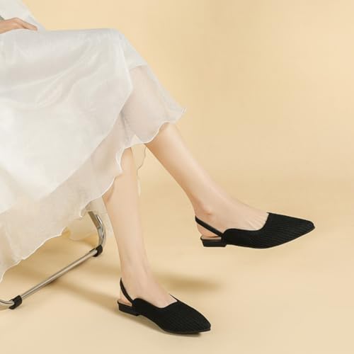 HROYL Slingback Flats for Women Pointed Toe Ballet Flats Shoes Women Dressy cushy Slip On Knit Flat Model XTZ-BT6