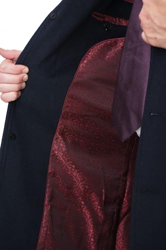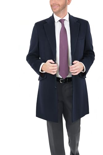 trending ! THE SUIT DEPOT Regular Fit Solid Navy Blue Wool Cashmere Blend 3/4 Topcoat With Ticket Pocket