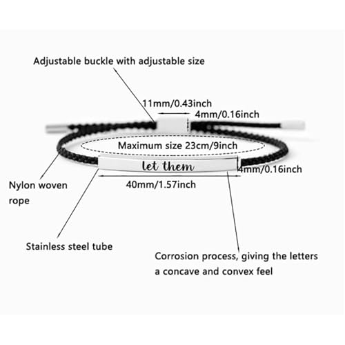 Let Them Tube Bracelet for Women, Self Worth Motivation Bracelet Adjustable Braided Rope Handmade Engraved Bracelets Stainless Steel To My Daughter/Best Friend Inspirational Gifts Jewelry 7