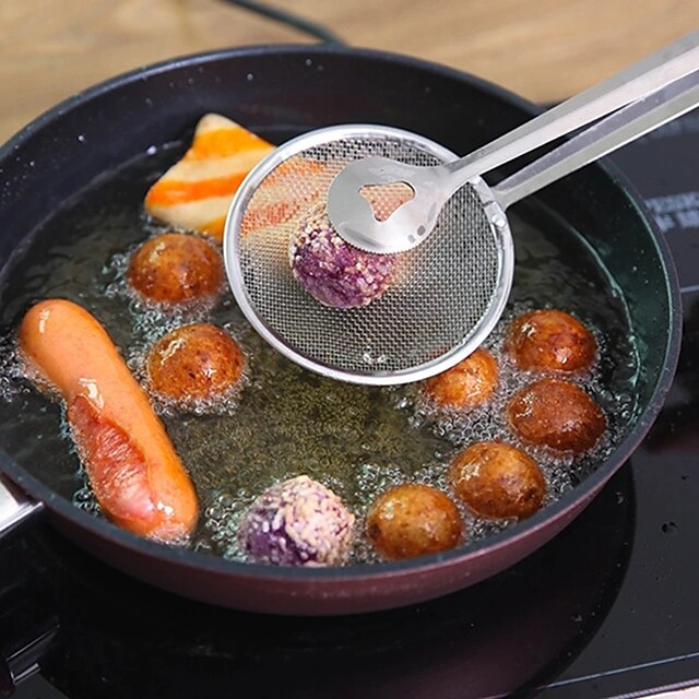 Kitchen 2 In 1 Stainless Steel Fine Mesh Filter Forceps Oil Scoop Oil Filter Filter Clip Filter Clip Fried Food Kitchen Tools 11