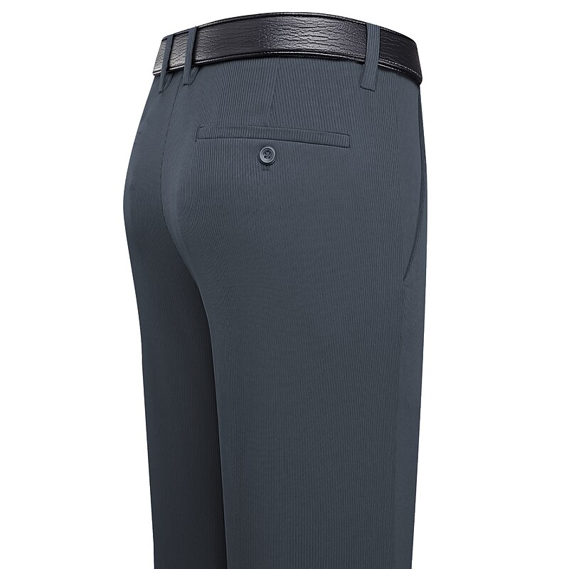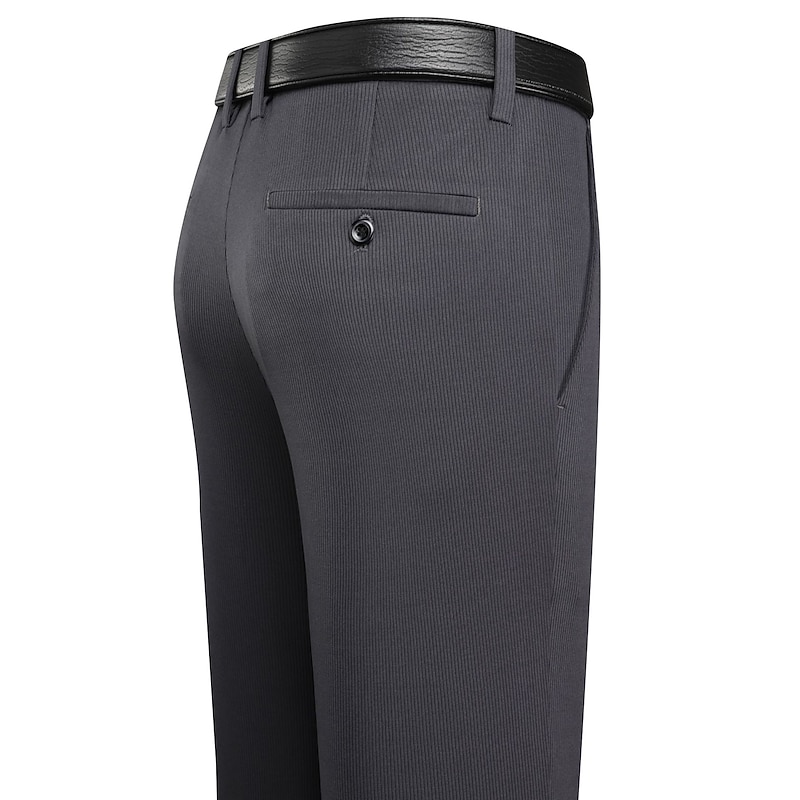 Crafted from a blend of spandex and polyester, these men's dress pants offer a breathable and soft texture that ensures comfort throughout the day. The stretchy material provides ease of movement, making them perfect for both busy workdays and special occasions.