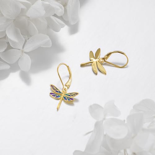 Dragonfly Earrings for Women Sterling Silver Gold Plated Dragonfly Leverback Dangle Earrings Jewelry Gifts for Women 5