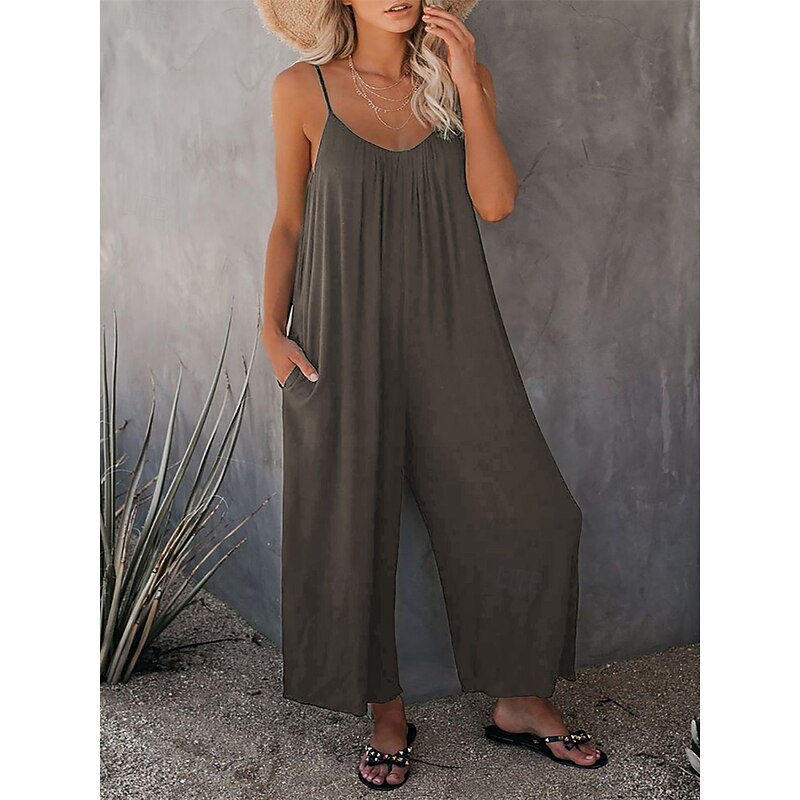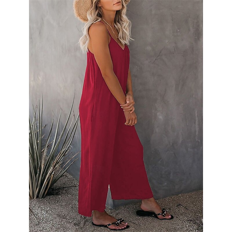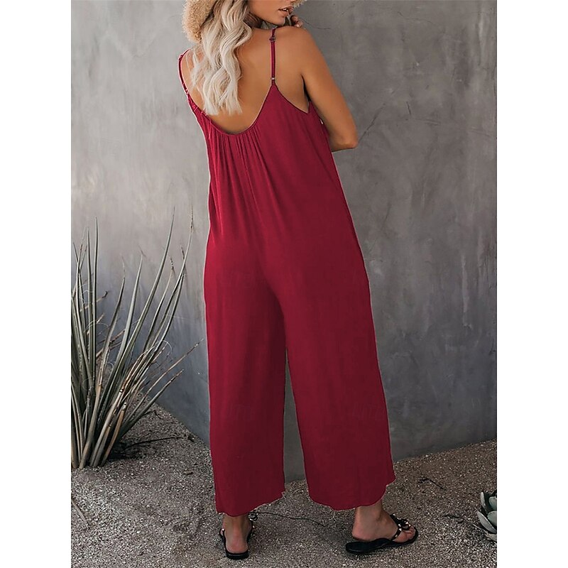 More information about Women's Jumpsuit Active Solid Color Sleeveless U Neck Vacation Daily Loose Fit Black Army Green Red Summer