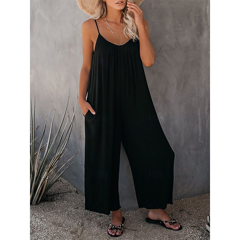 HOT ! Women's Jumpsuit Active Solid Color Sleeveless U Neck Vacation Daily Loose Fit Black Army Green Red Summer