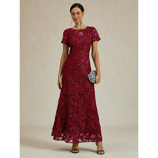 More information about Women's Maxi Dress Sheath Dress Elegant Party Cocktail Regular Fit Solid Color Short Sleeve Crew Neck Wine Summer Spring