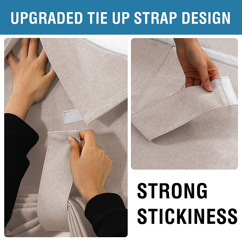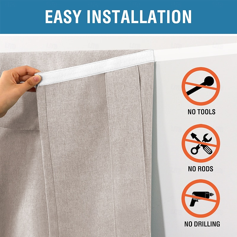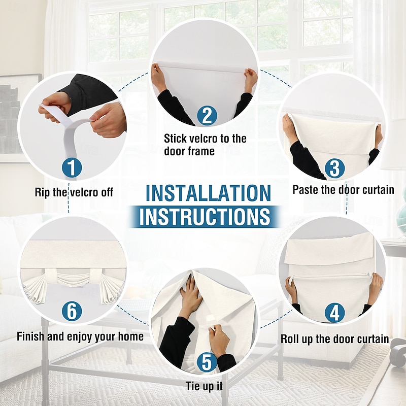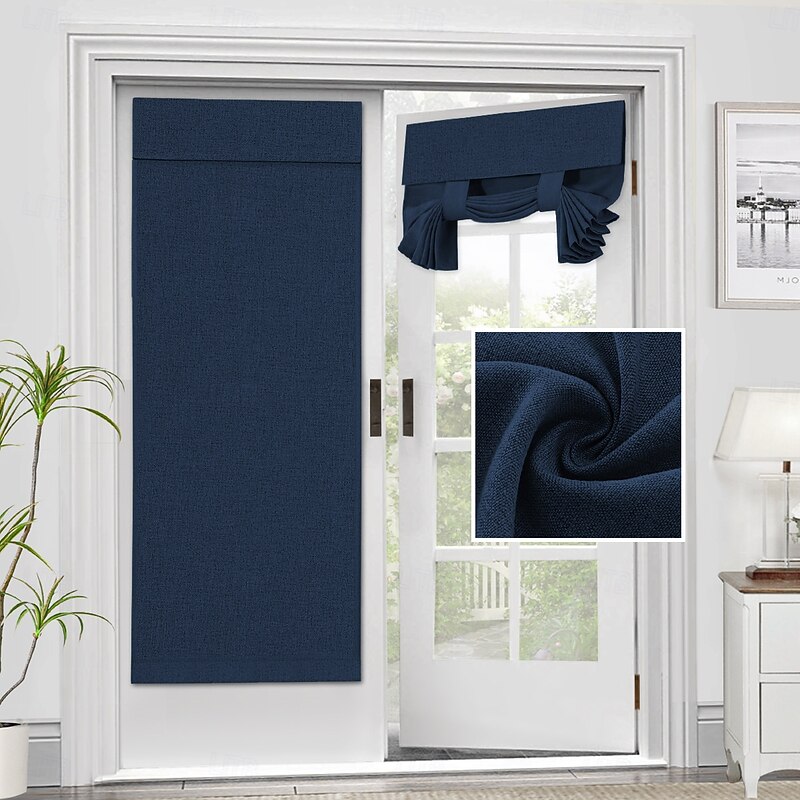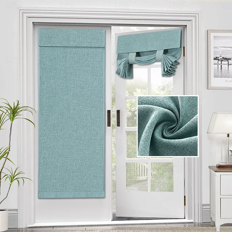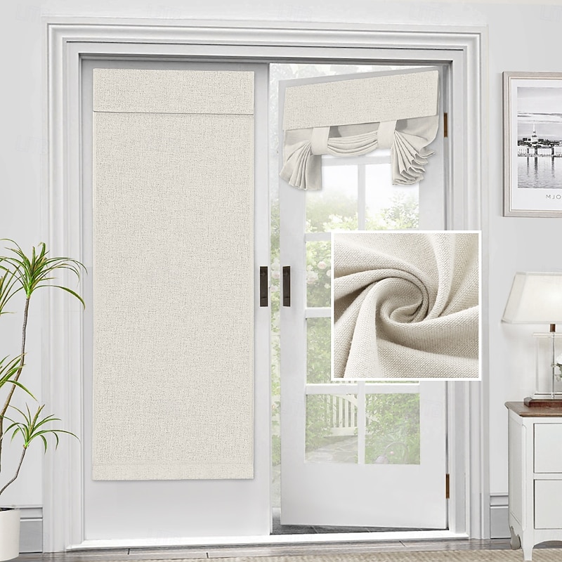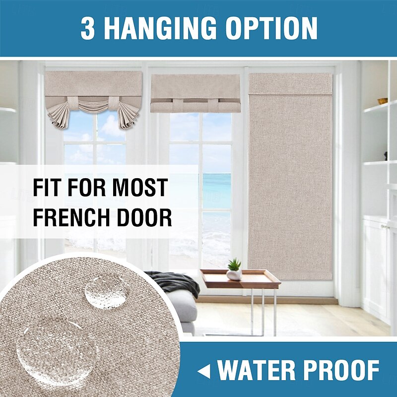Highlights WELL MADE: Sold individually. Each package Includes 1 french door curtain. Each panel measures 26-inch width by 40/68-inch length in addition with sticky velcro strap. This functional curtain has 2 hanging ways, you could tie up the curtain with the straps attached for sightseeing or tie down for full privacy RICH LINEN TEXTURED: Crafted from solid natural linen style premium polyester waterproof fabric. Primitive and natural effect make the panels more draped and aesthetic, live up your indoor or outdoor spaces with a sense of airiness and beauty MULTIPLE FUNCTIONS: These soft durable panel acts as a functional french door shade and offer privacy. Premium soft touch feeling on these elegant linen door panel add a charming decorative addition to any windowed door. Perfect for patio door, sidelight door, dining room, laundry, and even kitchens EASY HANGING: Tool free and no curtain rod necessary. Strong stickiness strap is featured on top of each panel. Just stick straps to the door frame and paste the sticky stickers to the straps. Please follow our Installation instruction included in package MACHINE WASHABLE: Easy cleaning and maintenance, just put it directly into washing machine with cold water, use only non-chlorine bleach when needed, tumble dry low and warm iron as needed