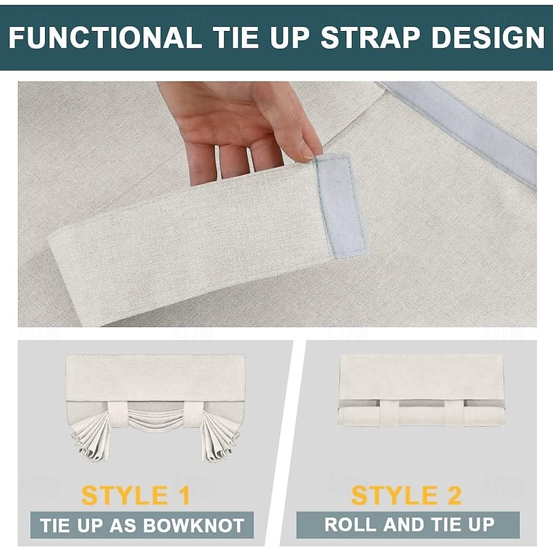 Linen Window Cover French Glass Door Curtain Blackout Tie Up Roman Shades Self Stick Thermal Insulated Tricia Light Block Room Darkening Privacy Blinds, 1 Panel 9
