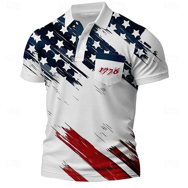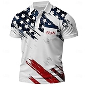 American Independence Day Men's American US Flag Polo Short Sleeve Polo Shirts Collared Shirts Casual Outdoor Athleisure Daily Wear Buttons Pocket 3D Print Summer White 1 White Red 13