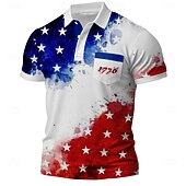 More information about American Independence Day Men's American US Flag Polo Short Sleeve Polo Shirts Collared Shirts Casual Outdoor Athleisure Daily Wear Buttons Pocket 3D Print Summer White 1 White Red