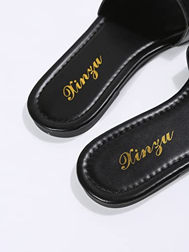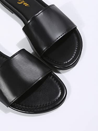 GORGLITTER PU Leather Flat Sandals Open Toe Slip On Slides Sandals 6