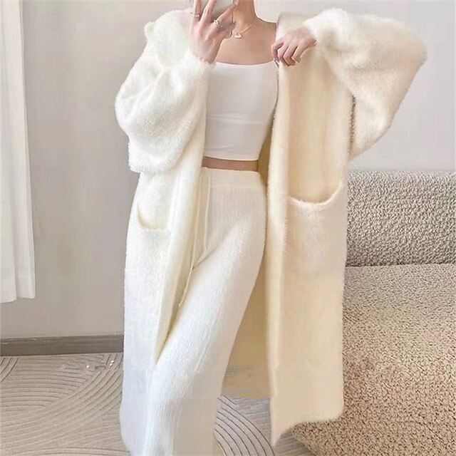HOT ! Women's Sweater Cardigan Fashion Streetwear Daily Solid Color Ribbed Hooded Knitted Long Sleeve Long Tops Knit Holiday Going out Weekend Black White Fall Winter