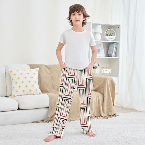 ZZXXB Geometry Print Boys Long Pants Soft Trousers Elastic Waist Kids Lounge Bottoms with Pockets S-XL 1
