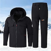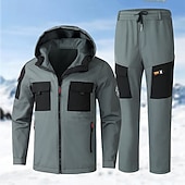 More information about Men's Hiking Jacket Fleece Jacket Puffer Jacket Thermal Set Winter Outdoor Thermal Warm Waterproof Windproof Top Black Green Grey
