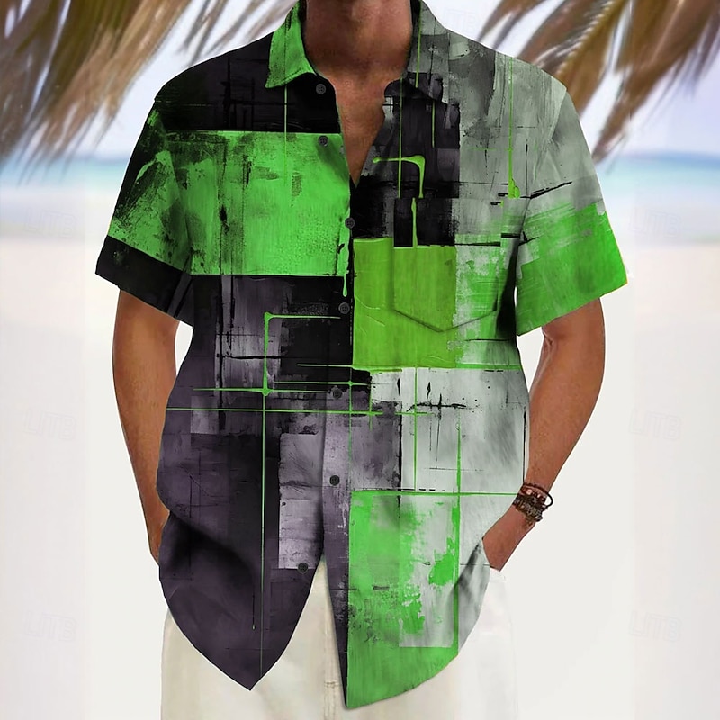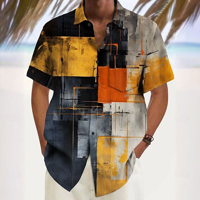 More information about Men's Geometric Color Block Patchwork Shirt Casual Shirt Button Up Shirt Short Sleeve Fashion Casual Vacation Dailywear Holiday Summer Spring Turndown 3D Print Collared Shirts Front One Pocket Yellow