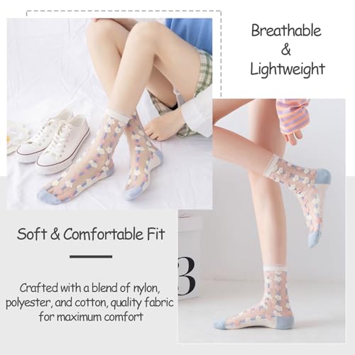 • Sheer & Breathable Design: Crafted from high-quality transparent mesh fabric, these lightweight socks provide a stylish, airy feel, making them perfect for all seasons.