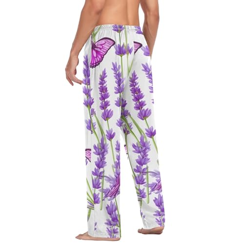 HOT ! Men's Pajama Pants Lavender Butterflies Purple Sleep Pajama Lounge Pant with Pockets, Elastic Waistband