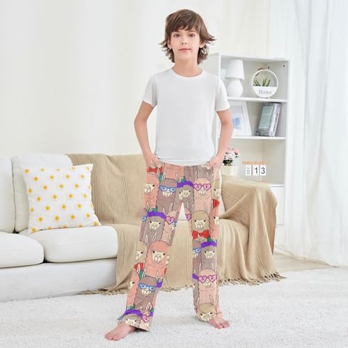 ZZXXB Funny Llama with Glasses Boys Long Pants Soft Trousers Elastic Waist Kids Lounge Bottoms with Pockets S-XL 1