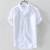 More information about Men's Linen Shirt Summer Shirt Beach Wear Button Up Shirt Plain Casual Daily White Blue Short Sleeve Lapel Summer Clothing Apparel Button-Down