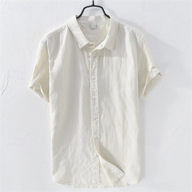 HOT ! Men's Linen Shirt Summer Shirt Beach Wear Button Up Shirt Plain Casual Daily White Blue Short Sleeve Lapel Summer Clothing Apparel Button-Down