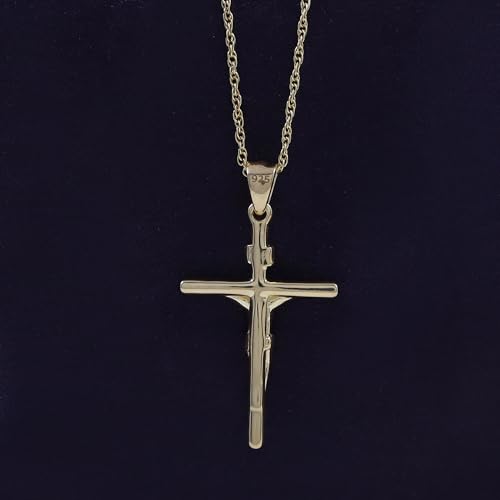 AFFY Danity Jesus Christ INRI Crucifix Cross Pendant Necklace Along With 18 Inche Rope Chain In 14K Gold Plated 925 Sterling Silver Pendent Necklace, Jewelry gift 1