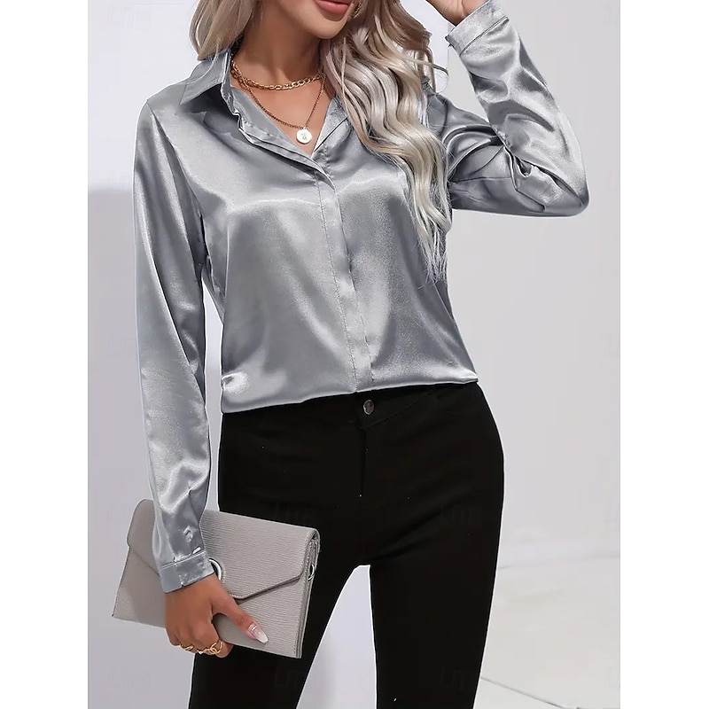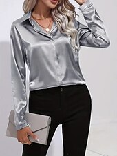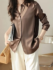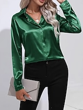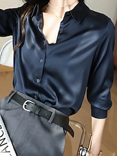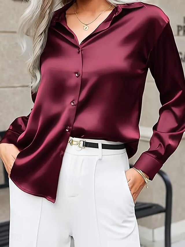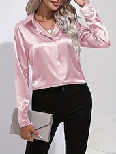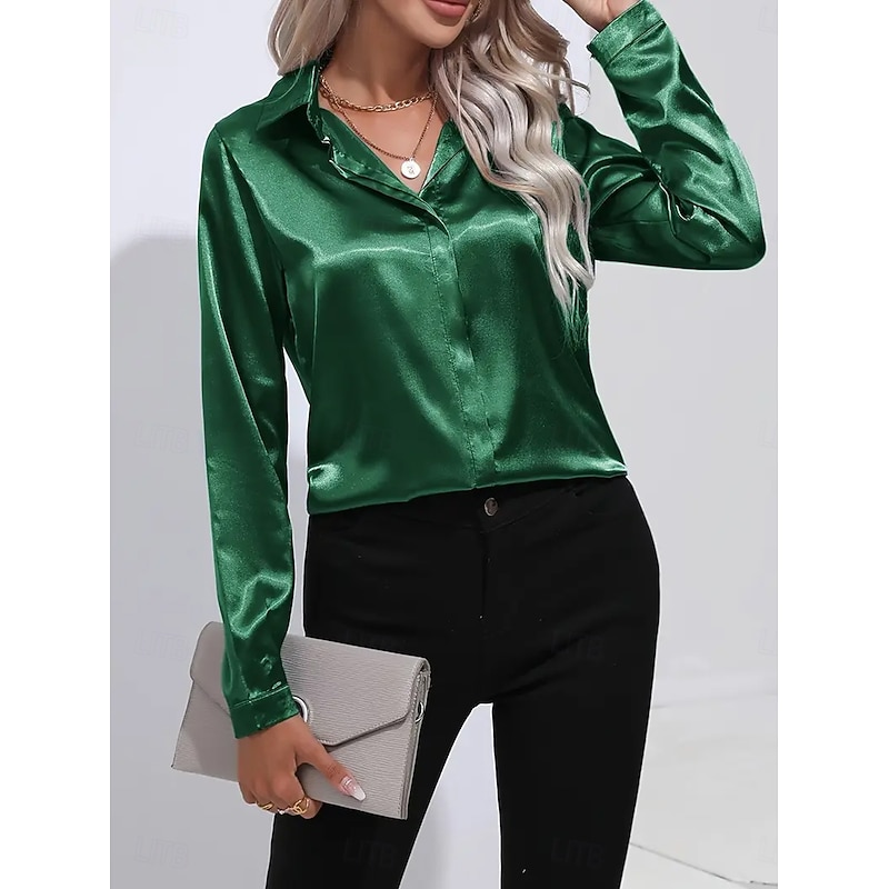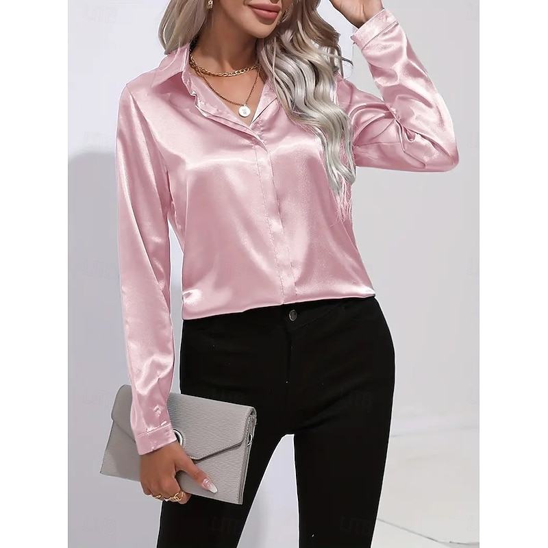 More information about Women's Shirt Work Shirt Solid Color Graphic Elegant Stylish Casual Long Sleeve Shirt Collar Regular Tops Work Party Evening Wear Daily Glitter Pink Wine Navy Blue Camel Green Spring, Fall, Winter