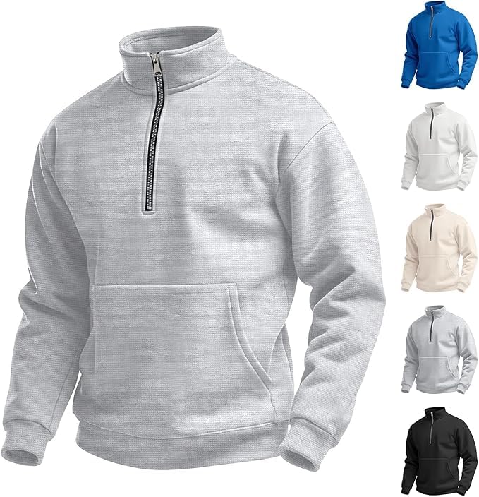 HOT ! Men's Waffle Fall Casual Outdoor Sweater High Mock Neck Half Zipper Pullover Long Sleeve Sweatshirt with Pocket