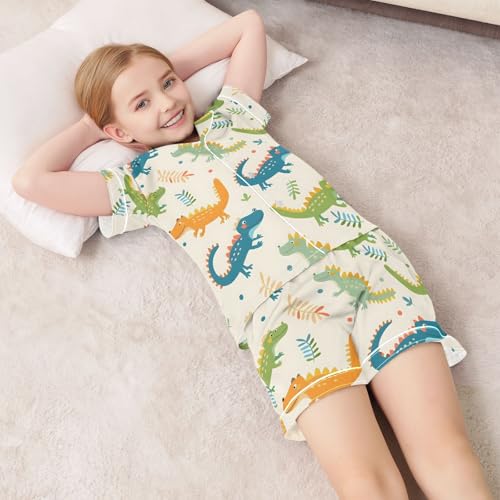 ALAZA Cute Crocodile Leaf Polka Dot Satin Pajamas Set Short Sleeve Button Down Sleepwear Summer Pjs 2 Piece 1