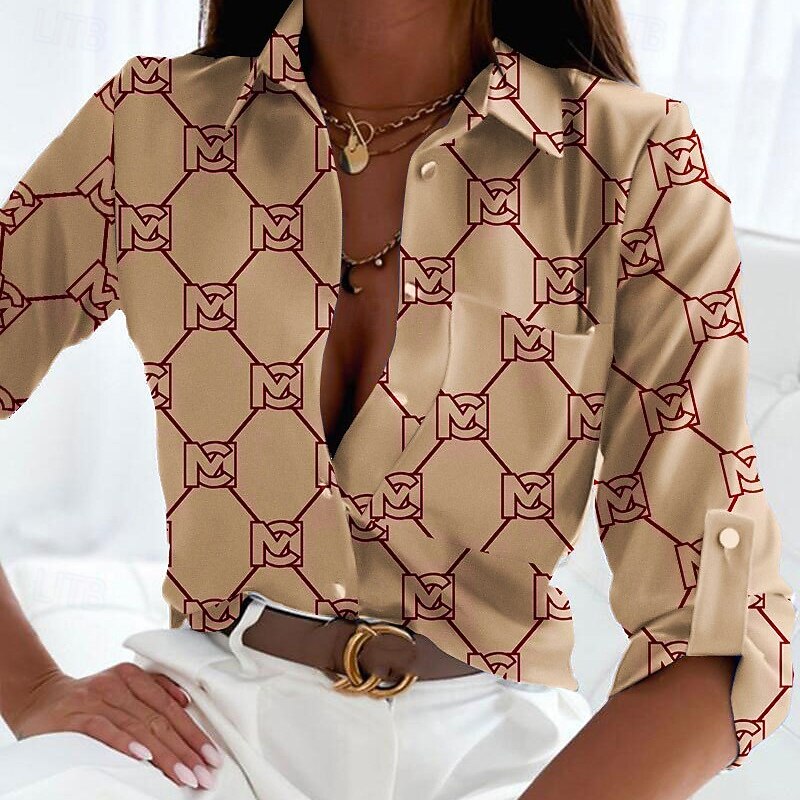 trending ! Women's Shirt Blouse Flower latest Casual Long Sleeve Shirt Collar Regular Tops Daily Holiday Buttons Print White Yellow Light Brown Brown Green Summer