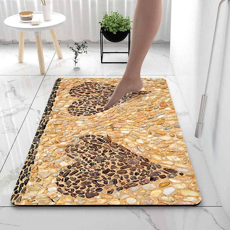 Smooth Stone Diatomaceous Earth Bath Mat Non-slip  Super Absorbent Bathroom Rug Door Mat New Design 7