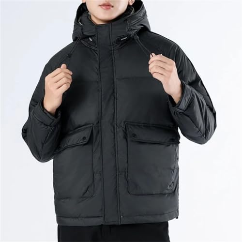 More information about Men's Light Down Jacket Winter Thickened Warm Stand Collar Hooded Solid Color Jacket