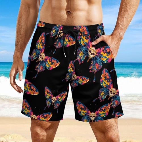 HOT ! Butterfly Skull Mens Swim Trunks with Quick-Drying Lining Beach Shorts for Outdoor Sports