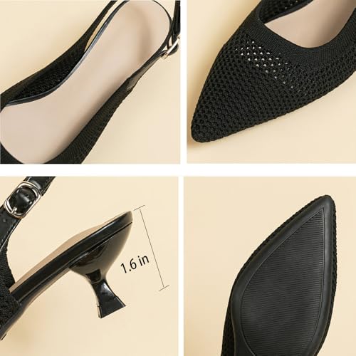 Slingback for Women's Closed Pointed Toe Kitten Heels with Ankle Strap Knitted Dress Pumps Shoes Work Wedding Everyday Parties 1.6 in Low Heels 7