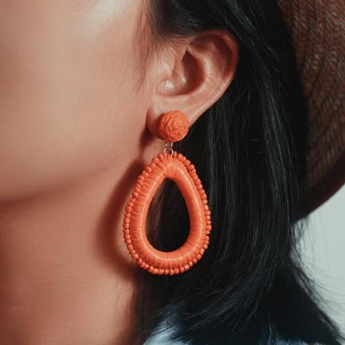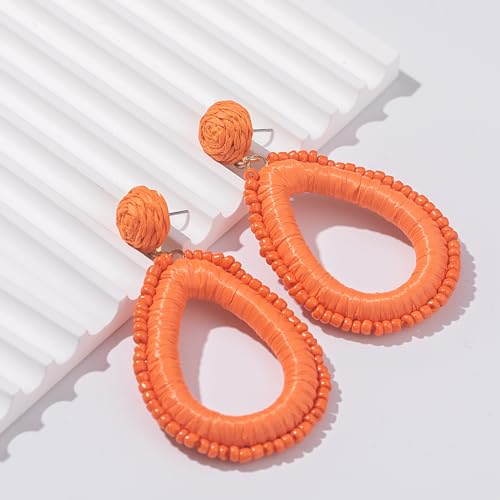 Why Choose Beaded Teardrop Earrings Boho Raffia Earrings Statement Tear Drop Earrings Trendy Summer Jewelry for Women?