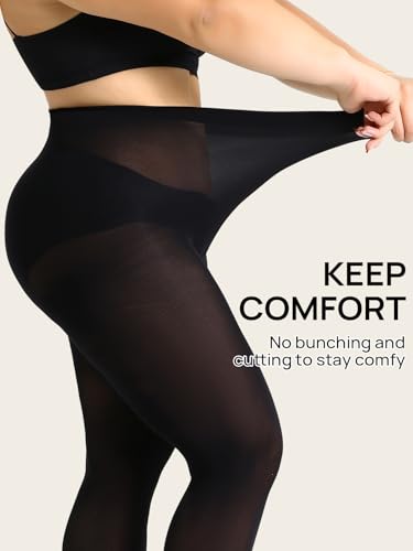 MANZI Women's 2 Pairs Control Top Pantyhose High Waist Plus Size Tights Ultra-Soft 4